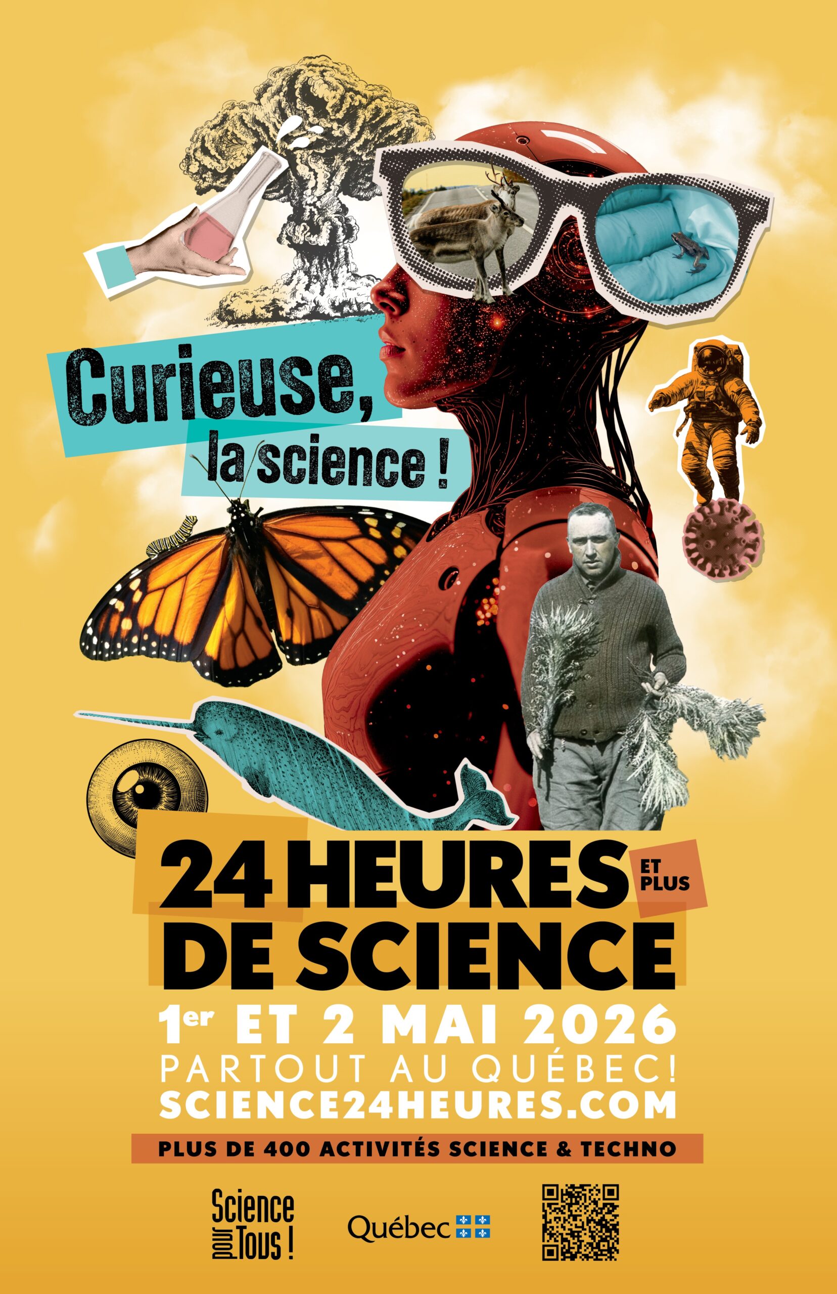 Notre affiche, c’est véritablement une ode aux curiosités scientifiques d’ici! Réalisée en collaboration avec la graphiste Patricia Gagnon, l’illustration regorge de clins d’œil au passé et au présent. Saurez-vous les reconnaitre?